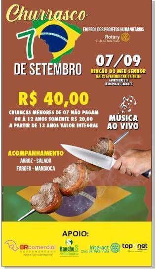 Participem do Churrasco do dia 7 de setembro do Rotary Club de Bela Vista.